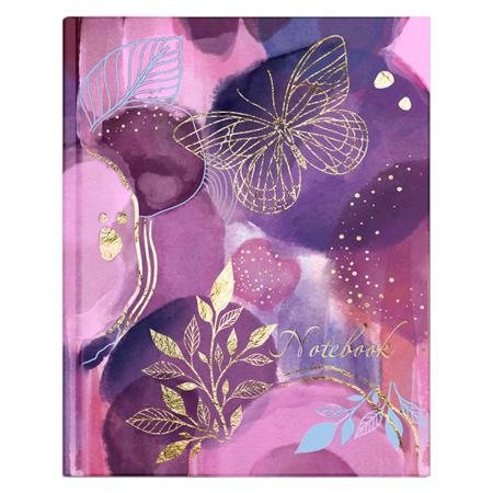 Записная книжка МАЛЫЙ ФОРМАТ А6 7БЦ 80л " Феникс " Фиолетовый сад, линия, обложка - матовый ламинированный картон, сшивка, белый офсет, тиснение фольгой, глиттер, 105*140мм