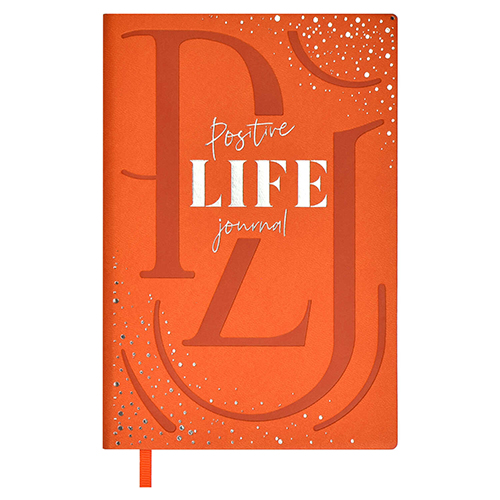 Записная книжка МАЛЫЙ ФОРМАТ А6+ искусственная кожа 96л " Феникс " Escalada Мысли позитивно! Виннер Оранжевый, линия, обложка - прозрачный ПВХ, съемная обложка, сшивка, дизайнерский белый блок, тиснение фольгой, блинтовое тиснение, ляссе, индивидуальная у