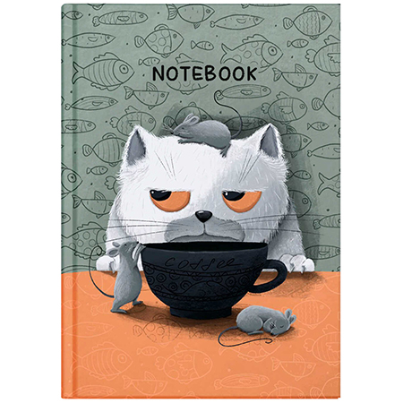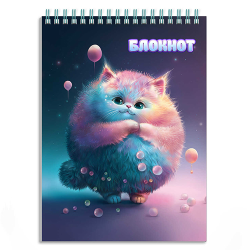 Блокнот МАЛЫЙ ФОРМАТ А6 спираль сверху 80л " Феникс " Пухлый кот, клетка, обложка - мелованный картон, белый офсет, 150*100мм