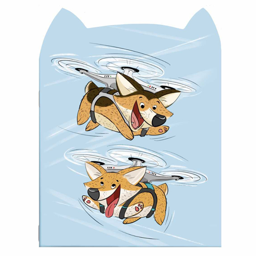 Блокнот МАЛЫЙ ФОРМАТ А6+ 32л " Феникс " Летающие корги, в точку, обложка - матовы ламинированный картон, фигурная вырубка, на скобе, белый офсет, 120*170мм