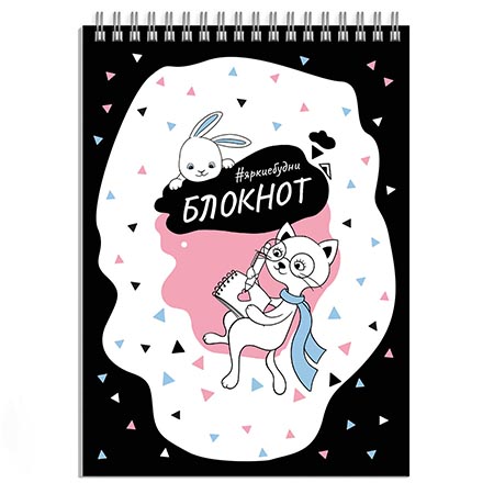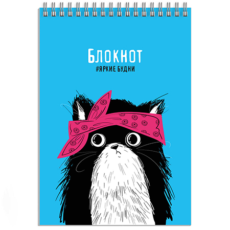 Блокнот А5 спираль сверху 60л " Феникс " Кошачьи истории, клетка, обложка - мелованный картон, УФ-лак, белый офсет, 145*200мм