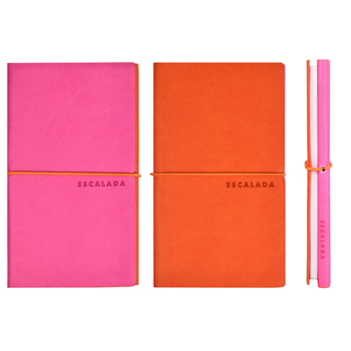 Записная книжка МАЛЫЙ ФОРМАТ А6 на резинке искусственная кожа 128л " Феникс " 2 в 1 Escalada Виннер Оранжевый+Малиновый, линия/клетка, сшивка, белый блок, индивидуальная упаковка, 100*170мм