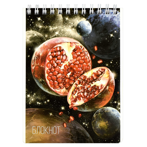 Блокнот МАЛЫЙ ФОРМАТ А6 спираль сверху 120л " Феникс " Сочные планеты, клетка, обложка - мелованный картон, УФ-лак, белый офсет, перфорация, 110*170мм