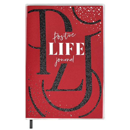 Записная книжка МАЛЫЙ ФОРМАТ А6+ интегральная 96л " Феникс " Escalada Мысли позитивно! Красный, линия, обложка - прозрачный ПВХ, съемная обложка, сшивка, аппликация из глиттерного полиэстера, тиснение фольгой, дизайнерский белый блок, фигурная вырубка, ля