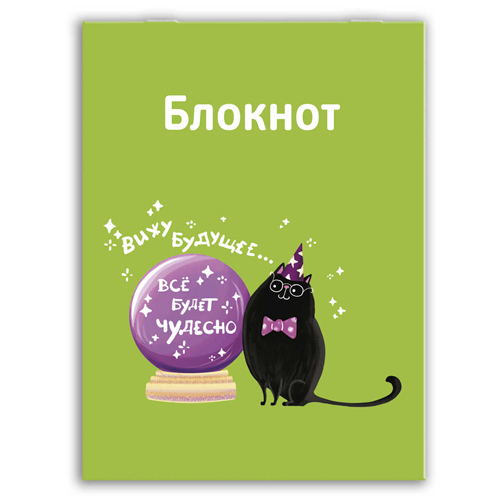Блокнот МАЛЫЙ ФОРМАТ А7 32л " Феникс " Кот-волшебник, клетка, обложка - мелованная бумага, на скобе, белый офсет, 70*100мм