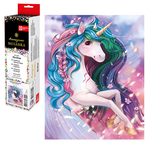 Картина алмазная " Феникс " 20*25см Радужный единорог, без подрамника, с полным заполнением, в наборе: холст с эскизом, пакеты со стразами, лоток для страз, стилус, силикон для страз, клей, пинцет металлический, схема, дополнительные пакеты с zip-молнией,