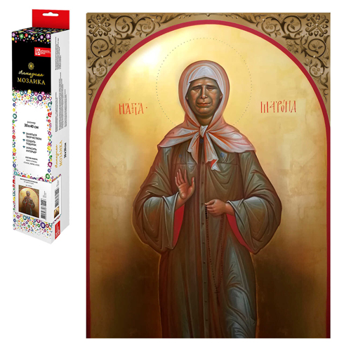 Картина алмазная " Феникс " 30*40см Икона Матрона Московская, без подрамника, с полным заполнением, в наборе: холст с эскизом, пакеты со стразами, лоток для страз, стилус, силикон для страз, клей, пинцет металлический, схема, дополнительные пакеты с zip-м