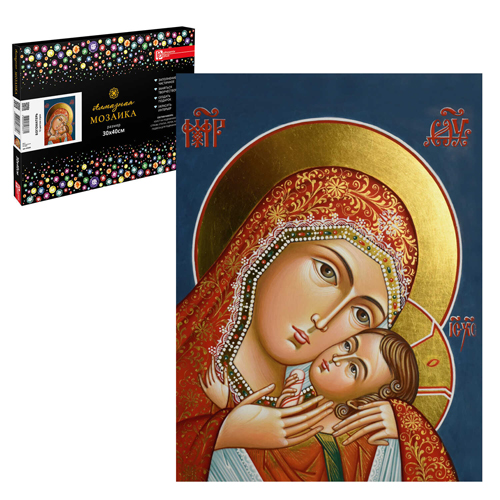 Картина алмазная " Феникс " 30*40см Икона Богоматерь, на подрамнике, с частичным заполнением, в наборе: холст с эскизом на подрамнике, пакеты со стразами, лоток для страз, стилус, силикон для страз, клей, пинцет металлический, схема, подвесы для подрамник