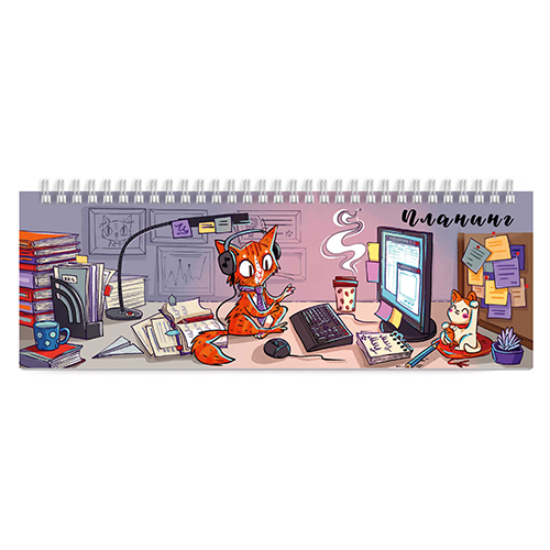 Планинг " Феникс " 290*100мм спираль 64л Офисный работник, недатированный, глянцевый ламинированный картон, белый офсет 65 г/м2, печать в одну краску