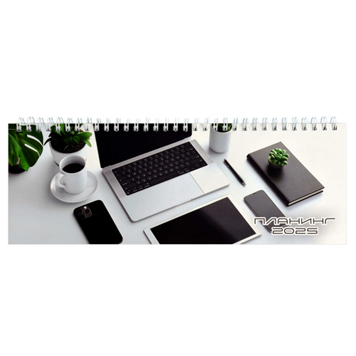 Планинг 2025 " Феникс " 290*100мм спираль 64л Утро в офисе, линия, глянцевый ламинированный картон, белый офсет 65 г/м2, печать в 1 краску