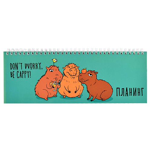 Планинг " Феникс " 290*100мм спираль 64л Капибары, недатированный, глянцевый ламинированный картон, белый офсет 65 г/м2, печать в одну краску