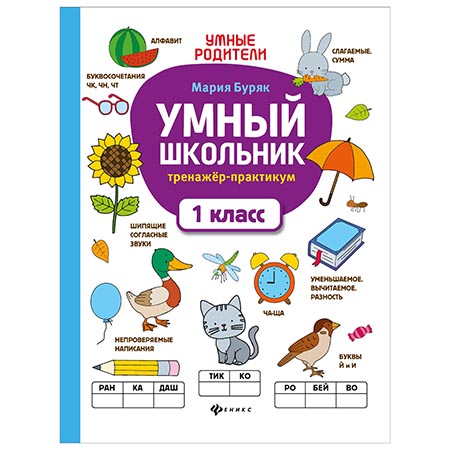 Рабочая тетрадь " Феникс " А4- 24л Умный школьник.Тренажер-практикум 1кл, обложка - глянцевая бумага, офсет