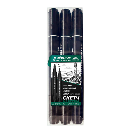 Набор скетчмаркеров " Феникс " 1цв Маяк черный, двухсторонние, 1,0-6,2мм, пулевидный/скошенный, трёхгранный корпус, ПВХ упаковка
