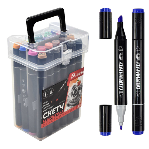 Набор скетчмаркеров " Феникс " 24цв Квокка, двухсторонние, 1,0-6,2мм, пулевидный/скошенный, трёхгранный корпус, раскладка для выкраски цветов, пластиковая упаковка