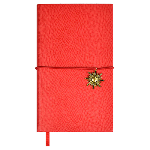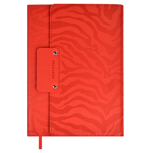 Ежедневник недатированный МАЛЫЙ ФОРМАТ А6 105*170мм искусственная кожа " Феникс " 120л Escalada Снейк Коралловый, линия, кремовый офсет 70г/м2, печать в 1 краску, ляссе, золотой срез, застежка-резинка с декоративной металлической фигуркой, карман на форза
