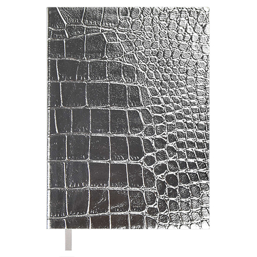 Ежедневник недатированный МАЛЫЙ ФОРМАТ А6+ 126*174мм искусственная кожа " Феникс " 160л Escalada Кроко Металлик Серебряный, линия, кремовый офсет 70г/м2, печать в 1 краску, ляссе, справочная информация, индивидуальная упаковка, подходит под горячее тиснен