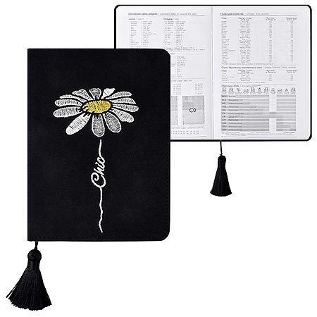 Ежедневник недатированный МАЛЫЙ ФОРМАТ А6+ 126*174мм искусственная кожа " Феникс " 120л Escalada Велюр Черный, линия, блок- кремовый офсет 70г/м2, печать в 1 краску, вышивка, кисточка на ляссе, скругленные углы, справочная информация, индивидуальная упако