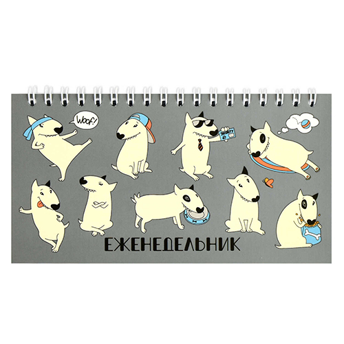 Еженедельник недатированный 165*85мм спираль интегральный " Феникс " 64л Смешные собаки, матовая ламинация, линия, выборочный УФ-лак, белый офсет 65г/м2, печать в 1 краску