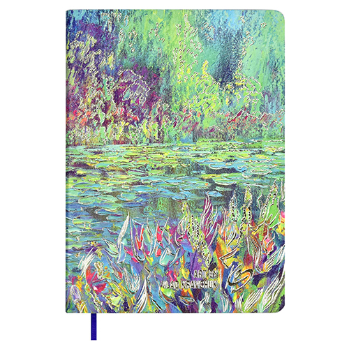 Ежедневник недатированный МАЛЫЙ ФОРМАТ А6+ 126*174мм искусственная кожа " Феникс " 120л Escalada by Vlad Kravchuk Пруд, линия, кремовый блок 70г/м2, печать в 1 краску, ляссе, тиснение фольгой, цветной срез, справочная информация, пакет, подходит под горяч