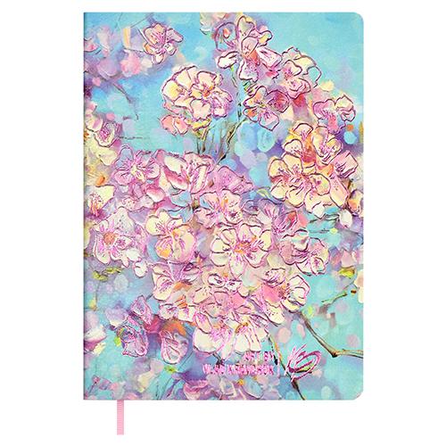 Ежедневник недатированный МАЛЫЙ ФОРМАТ А6+ 126*174мм искусственная кожа " Феникс " 120л Escalada by Vlad Kravchuk Вишня цветет, линия, кремовый блок 70г/м2, печать в 1 краску, ляссе, блинтовое тиснение, цветной срез, справочная информация, пакет, подходит