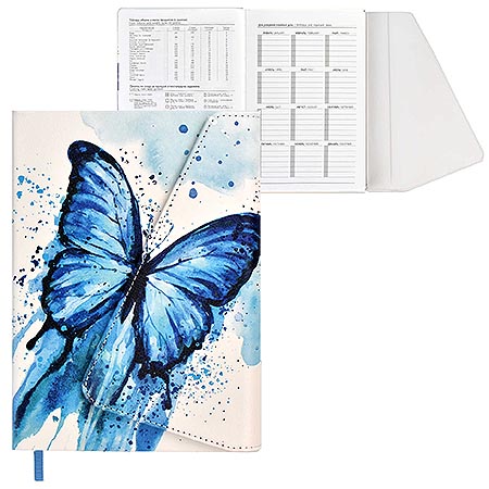 Ежедневник недатированный А5 150*211мм искусственная кожа " Феникс " 160л Escalada Бабочка, линия, магнитный клапан, белый офсет 70г/м2, печать в 1 краску, ляссе, скругленные углы, антистресс-раскраски, справочная информация, индивидуальная упаковка, подх