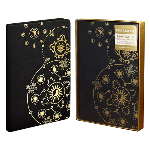 Ежедневник недатированный А5 146*211мм искусственная кожа " Феникс " 124л Escalada Арт-терапия, линия, тиснение фольгой конгревное, белый офсет 70г/м2, печать в 1 краску, ляссе, закругленные углы, справочная информация, 4 листа антистресс-раскрасок "Манда