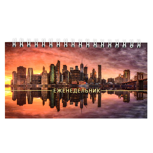 Еженедельник недатированный 165*85мм спираль интегральный " Феникс " 64л Мегаполис, матовая ламинация, линия, выборочный УФ-лак, белый офсет 65г/м2, печать в 1 краску