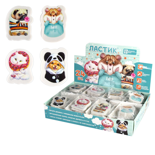 Ластик " Феникс " Милые животные 31*40*10мм, из термопластичной резины, картонный дисплей