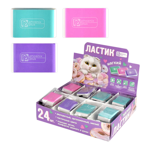 Ластик " Феникс " Пастельная классика 33*21*10мм, из термопластичной резины, картонный дисплей