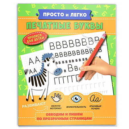 Пропись " Феникс " А4 32л Просто и легко. Печатные буквы, прозрачные страницы тренируют зоркость, мелкую моторику, внимательность, обложка - мелованная бумага, 215*260мм