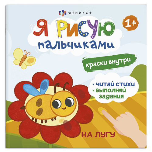 Раскраска " Феникс " А4 4л Я рисую пальчиками.На лугу, обложка - мелованная бумага, блок- офсет, на скобе, 5 акварельных красок, 225*225мм