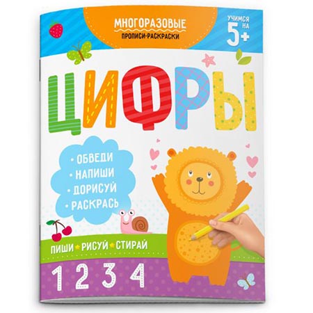 Пропись-раскраска " Феникс " А4 8л Пиши-рисуй-стирай Цифры, многоразовая: обведи, напиши, дорисуй, обложка - мелованная бумага, 200*260мм