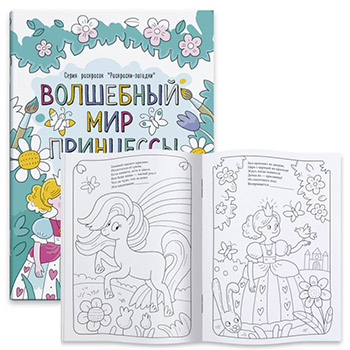 Раскраска-загадки " Феникс " А4 6л Волшебный мир принцесс, обложка - глянцевая мелованная бумага, на скобе, 210*230мм