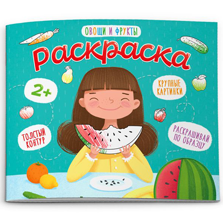 Раскраска " Феникс " 170*140мм 4л Овощи и фрукты, обложка- мелованная бумага, на скобе