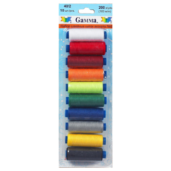 Нитки для шитья " Gamma " №8 в наборе: 10шт ассорти 183м, полиэстер, картонный блистер, европодвес