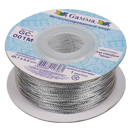 Шнур " Gamma " 1мм*100м под серебро, металлизированный