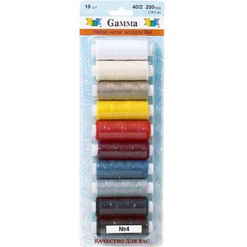 Нитки для шитья " Gamma " №4 в наборе: 10шт ассорти 183м, полиэстер, картонный блистер, европодвес