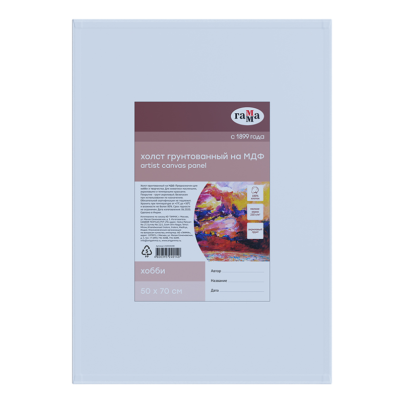 Холст на МДФ Гамма "Хобби", 50*70см, 100% индийский хлопок, 250г/м2, мелкое зерно