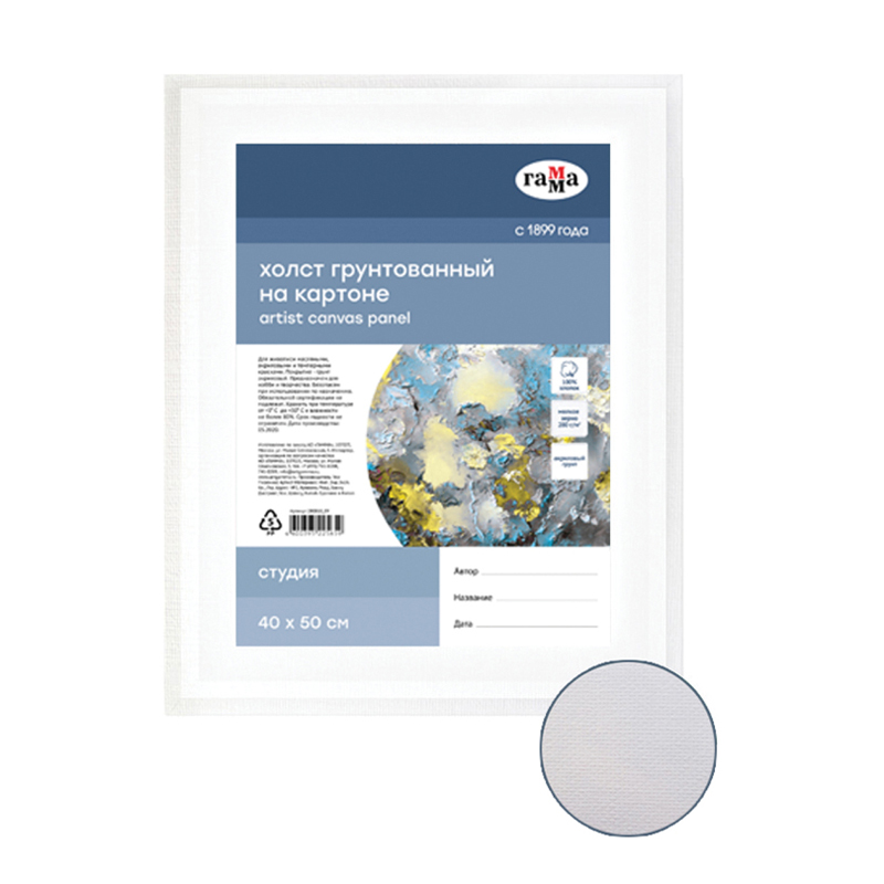 Холст на картоне Гамма "Студия", 40*50см, 100% хлопок, 280г/м2, мелкое зерно