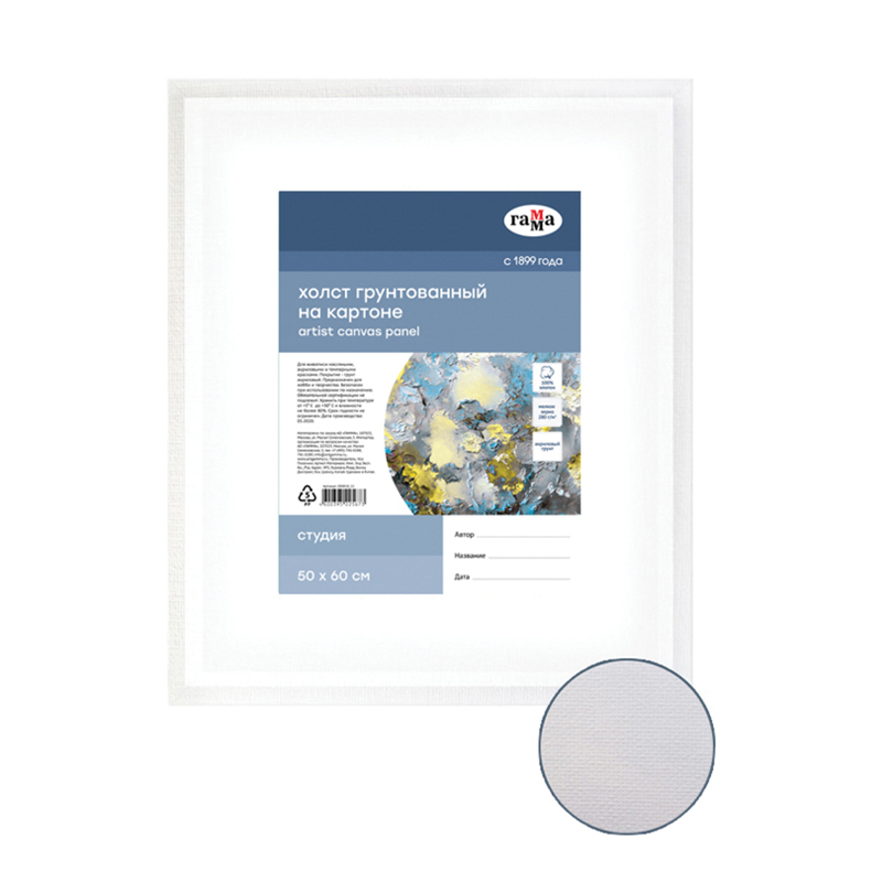 Холст на картоне Гамма "Студия", 50*60см, 100% хлопок, 280г/м2, мелкое зерно