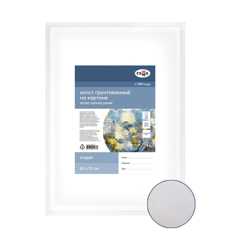 Холст на картоне Гамма "Студия", 50*70см, 100% хлопок, 280г/м2, мелкое зерно