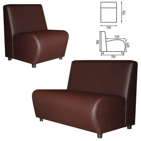 Кресло мягкое "Клауд", "V-600", 550х750х780 мм, без подлокотников, экокожа, коричневое