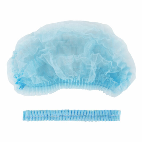 Шапочка-берет Шарлотта "Плиссе" голубая, КОМПЛЕКТ 125 шт., спанбонд 8 г/м2, ГЕКСА