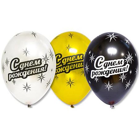 Шар латексный шелкография 14"/35см С Днем рождения! 3 цвета