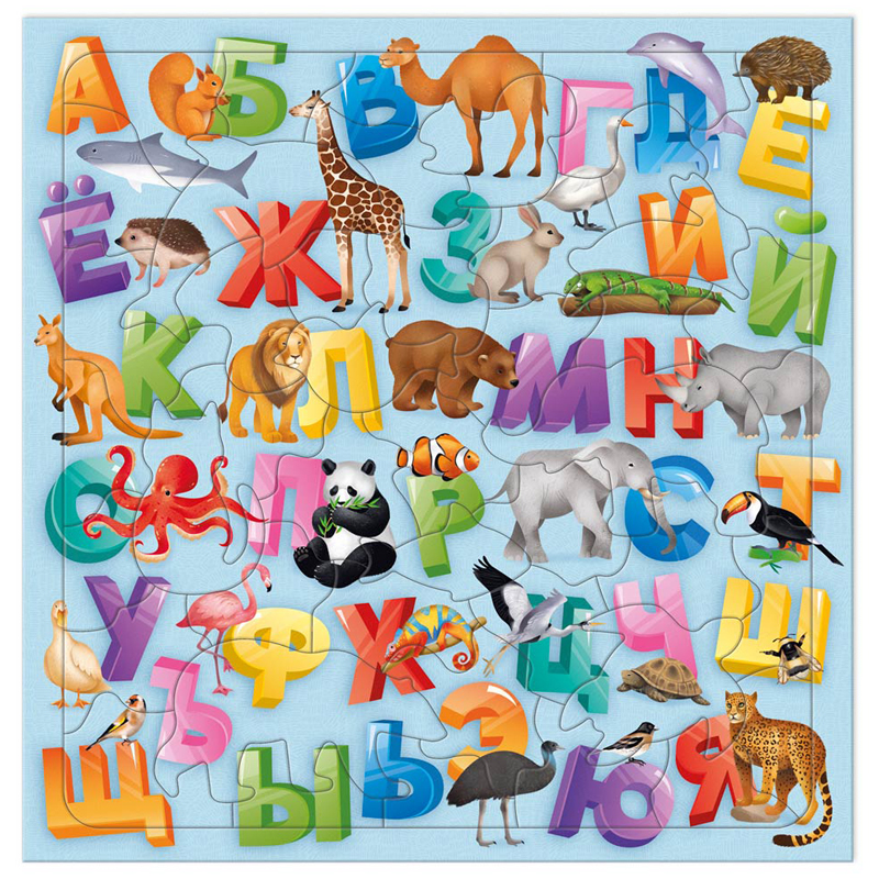 Пазл фигурный на подложке 45 эл. ГЕОДОМ "Азбука", 30*30,5см, с дополненной реальностью