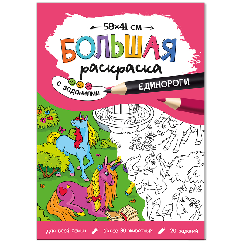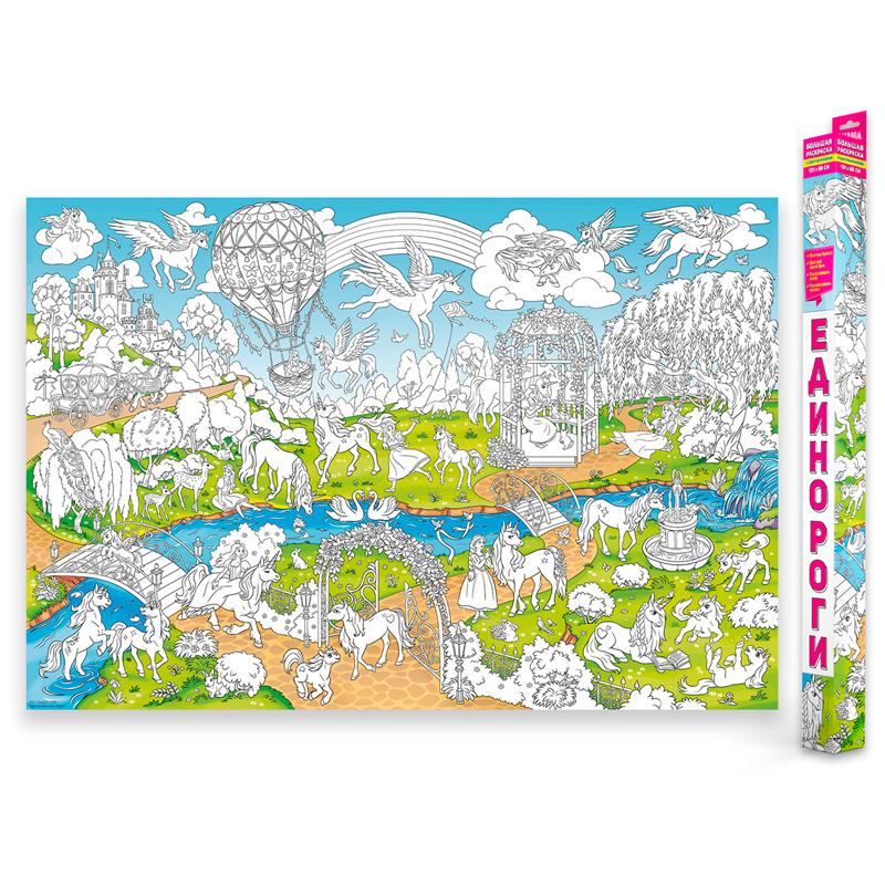 Большая раскраска 580*410 ГЕОДОМ "Единороги" с заданиями
