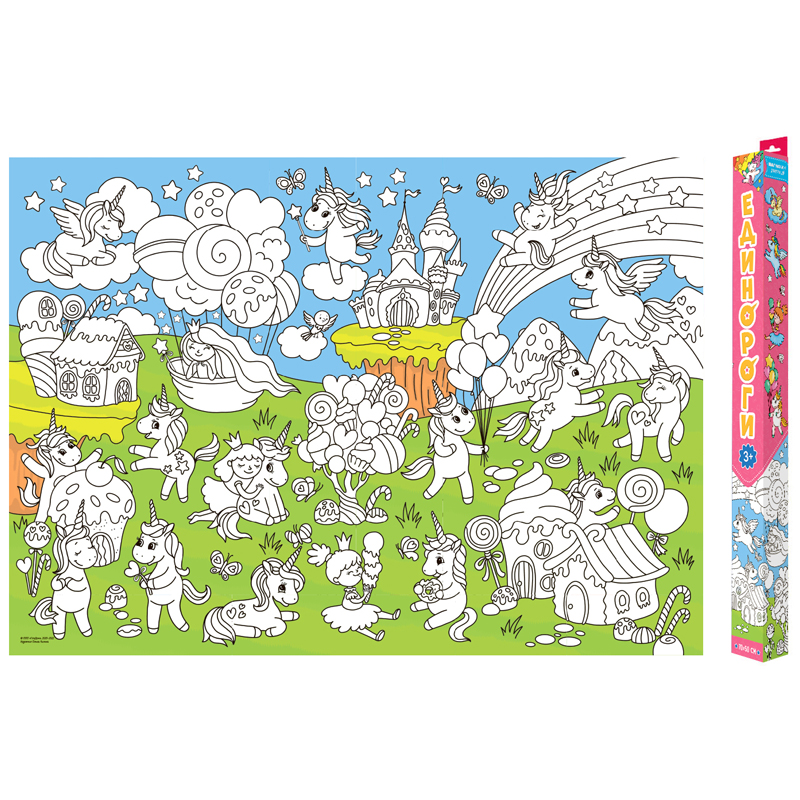 Плакат-раскраска для малышей 700*500 ГЕОДОМ "Единороги"