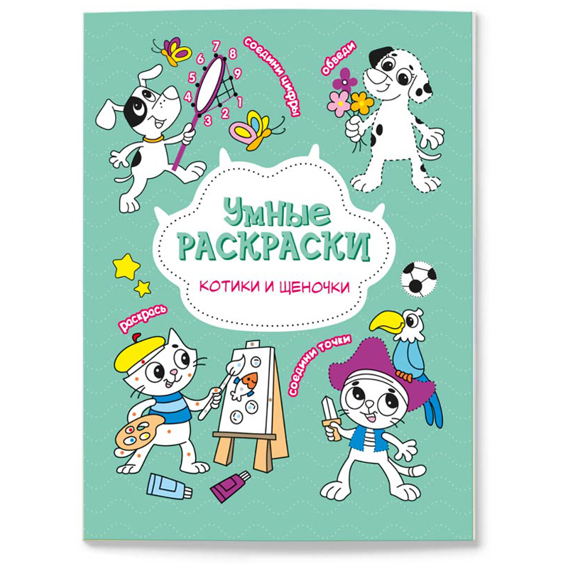 Раскраска по точкам и цифрам 165*215 ГЕОДОМ "Умные раскраски. Котики и щеночки ", 16стр.