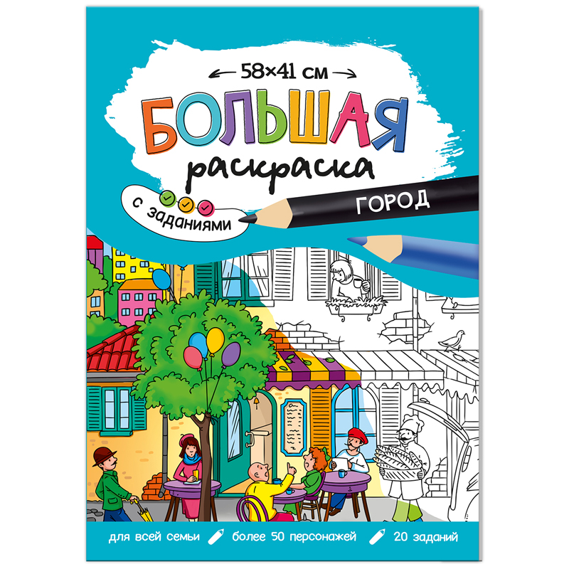 Большая раскраска 580*410 ГЕОДОМ "Город" с заданиями