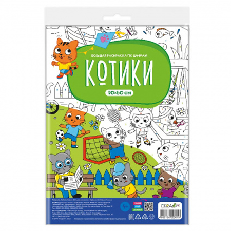 Раскраска-плакат по цифрам " ГеоДом " 90*60см 1л Котики